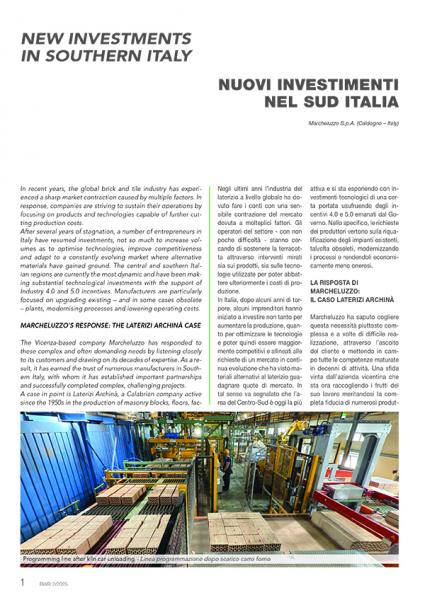 The company Laterizi Archinà has once again chose the Vicenza-based firm to upgrade key stages of its production process, reaffirming the long-standing trust and collaboration between the two companies.